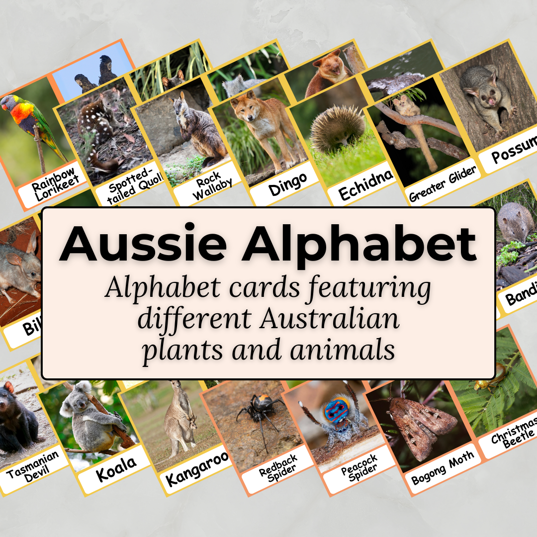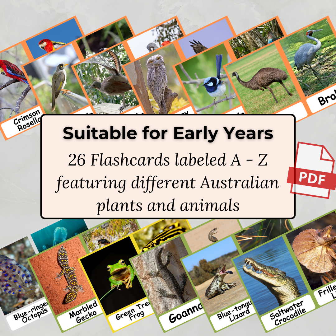 ✅ 26 flashcards featuring native Australian wildlife and plants