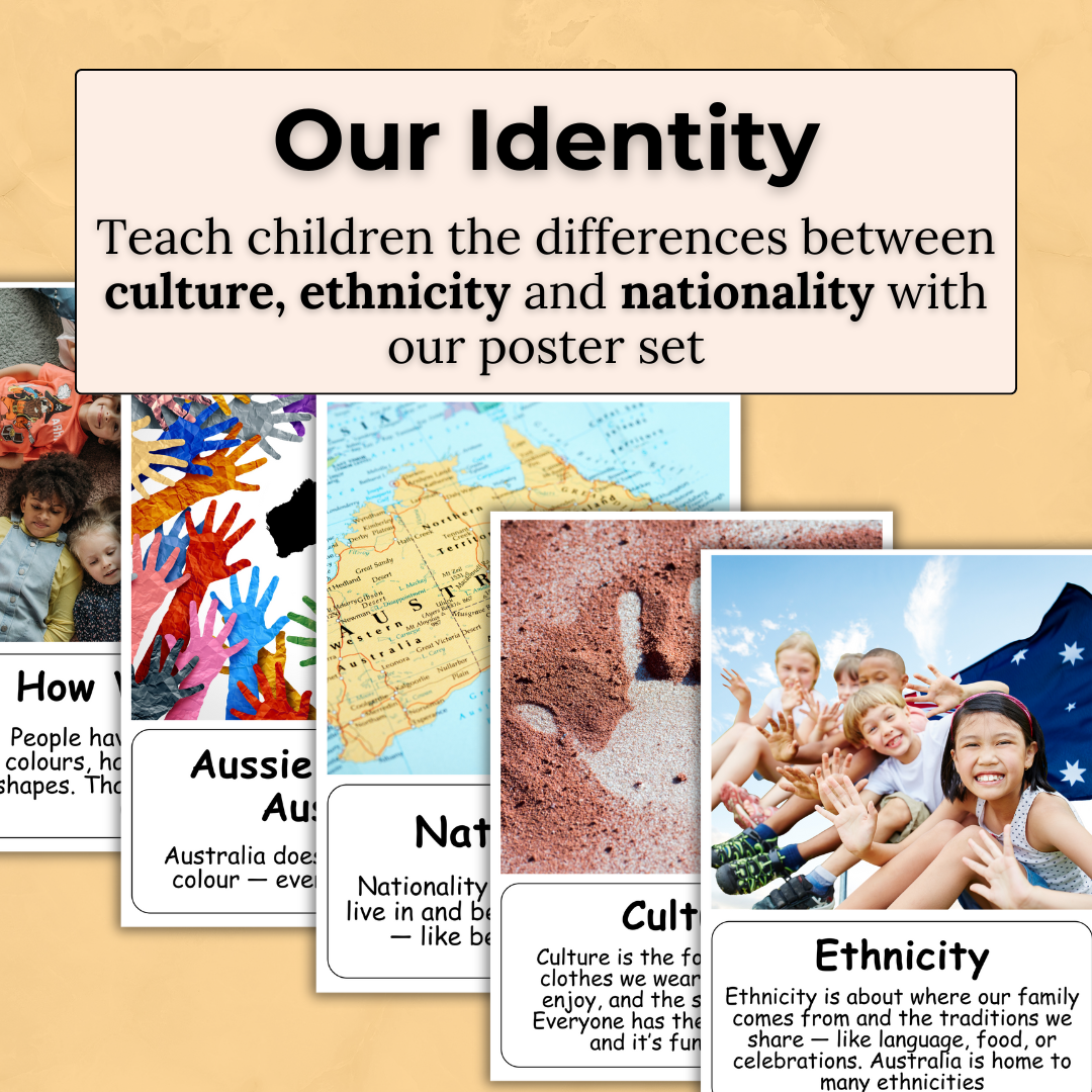 - Understanding Identity — posters that explain appearance, ethnicity, culture, and nationality in simple, positive language for children.