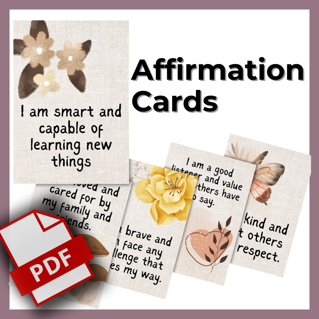 The harmonious blend of beige, brown, and natural tones evokes a sense of tranquility, making these affirmation cards ideal for calming moments, reflection, or group activities. Whether used during family bonding time, classroom discussions, or mindfulness practices, these cards create a serene and nurturing environment that encourages meaningful conversations and personal growth.