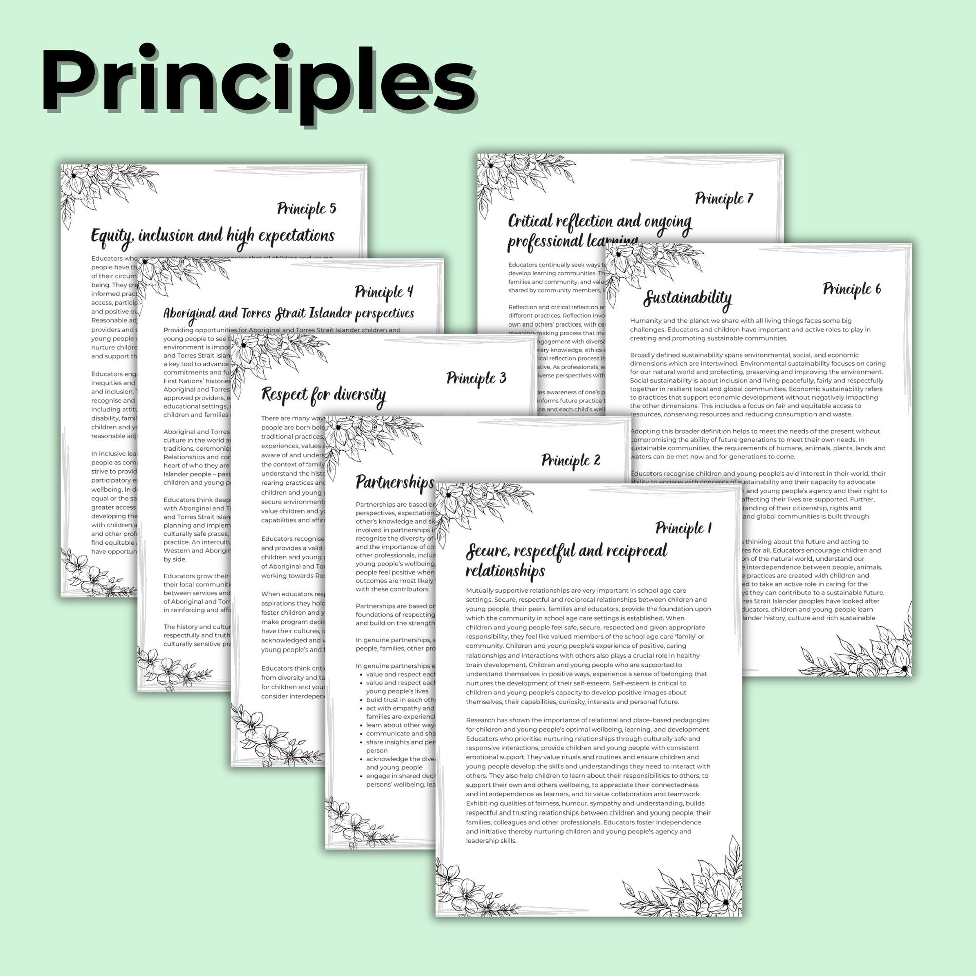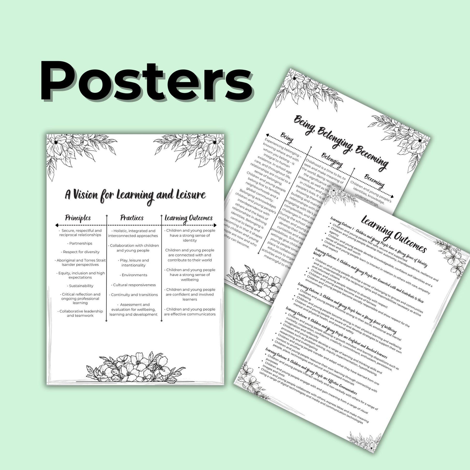 MTOP 2.0 Updated Posters and Cheat Sheets - Minimalist Design for Learning Outcomes, Principles and Practices Early Years Learning Framework