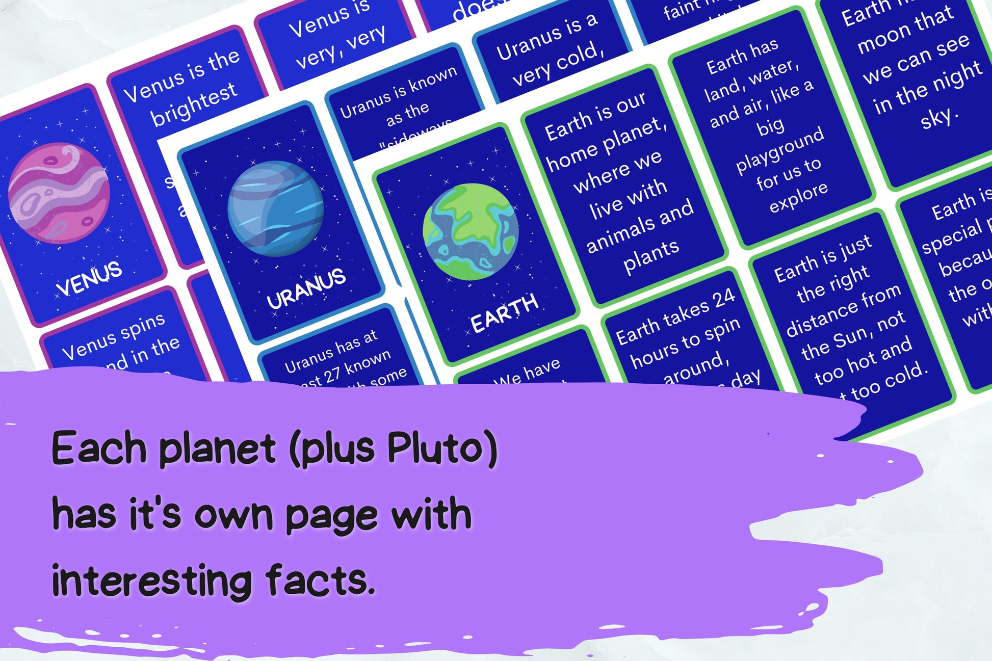 These fact cards are not only informative but also incredibly versatile. Display them as beautiful posters to create an immersive space-themed environment in your child's room or play area. Alternatively, cut them up into individual cards for hands-on exploration and interactive learning.