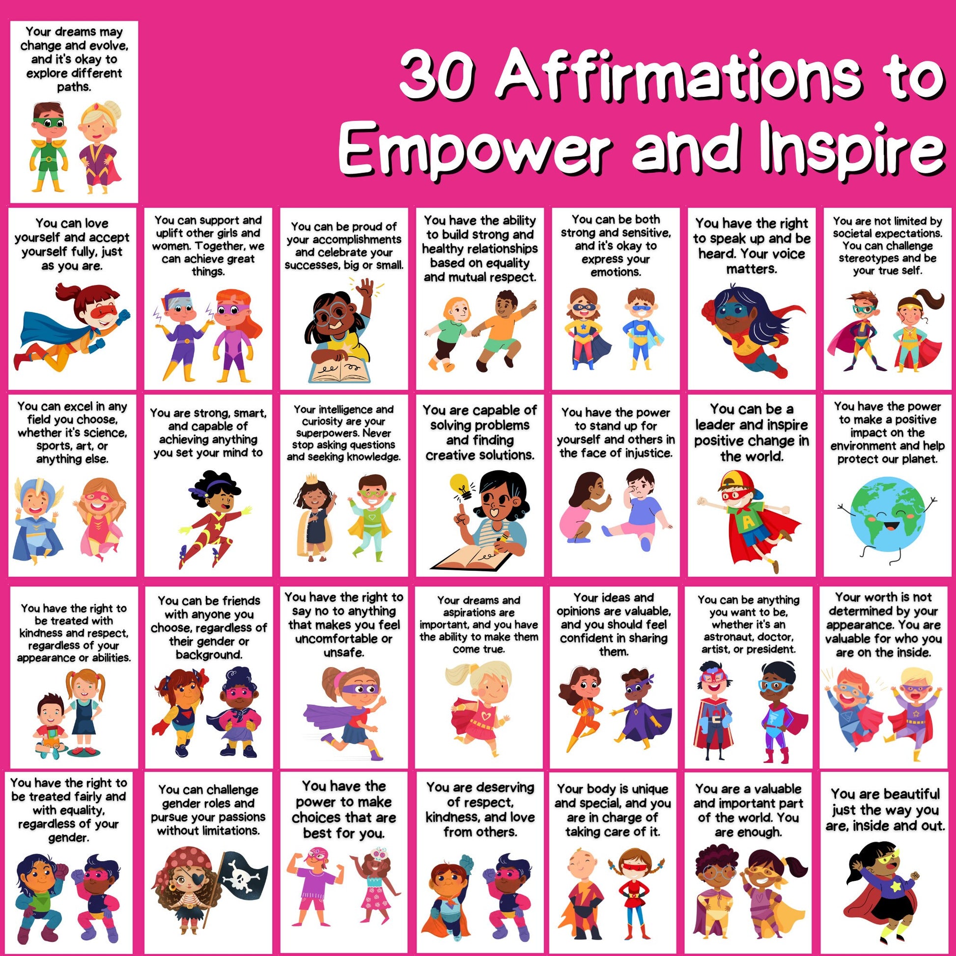 - Thoughtfully curated affirmations to empower kids and bolster their self-esteem.